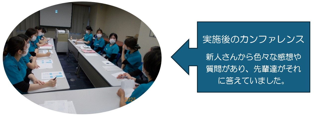 実施以外の新人さんは観察者となり、実施後感想を伝え合いました。