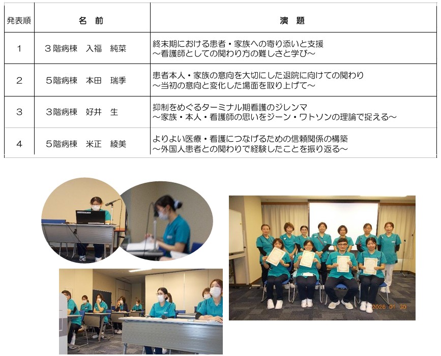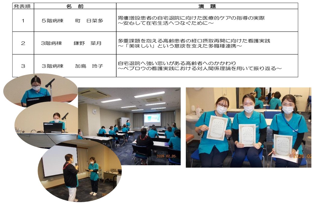2年目看護師3名が実施した看護を振り返り発表しました。