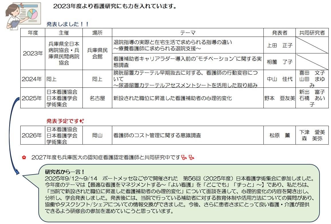 兵庫県西宮市の医療法人(財団)喜望会 谷向病院 看護部